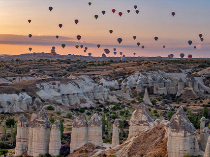 11 nuits en pension complète en hôtel 4&5 étoiles, dans les centres historiques des villes pour découvrir en toute sérénité les régions de Turquie les plus réputées que sont Istanbul, Éphèse, Pamukkale ainsi que la Cappadoce avec ses cheminées de fées et ses grottes troglodytiques.