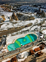 L'hôtel est situé à Uchisar, rocher de la Cappadoce au splendide panorama, non loin de la Vallée de l'Amour aux formes surprenantes, et dispose de 79 chambres et suites, avec équipement standard et de nombreux autres services selon la catégorie choisie: jacuzzi, patio...